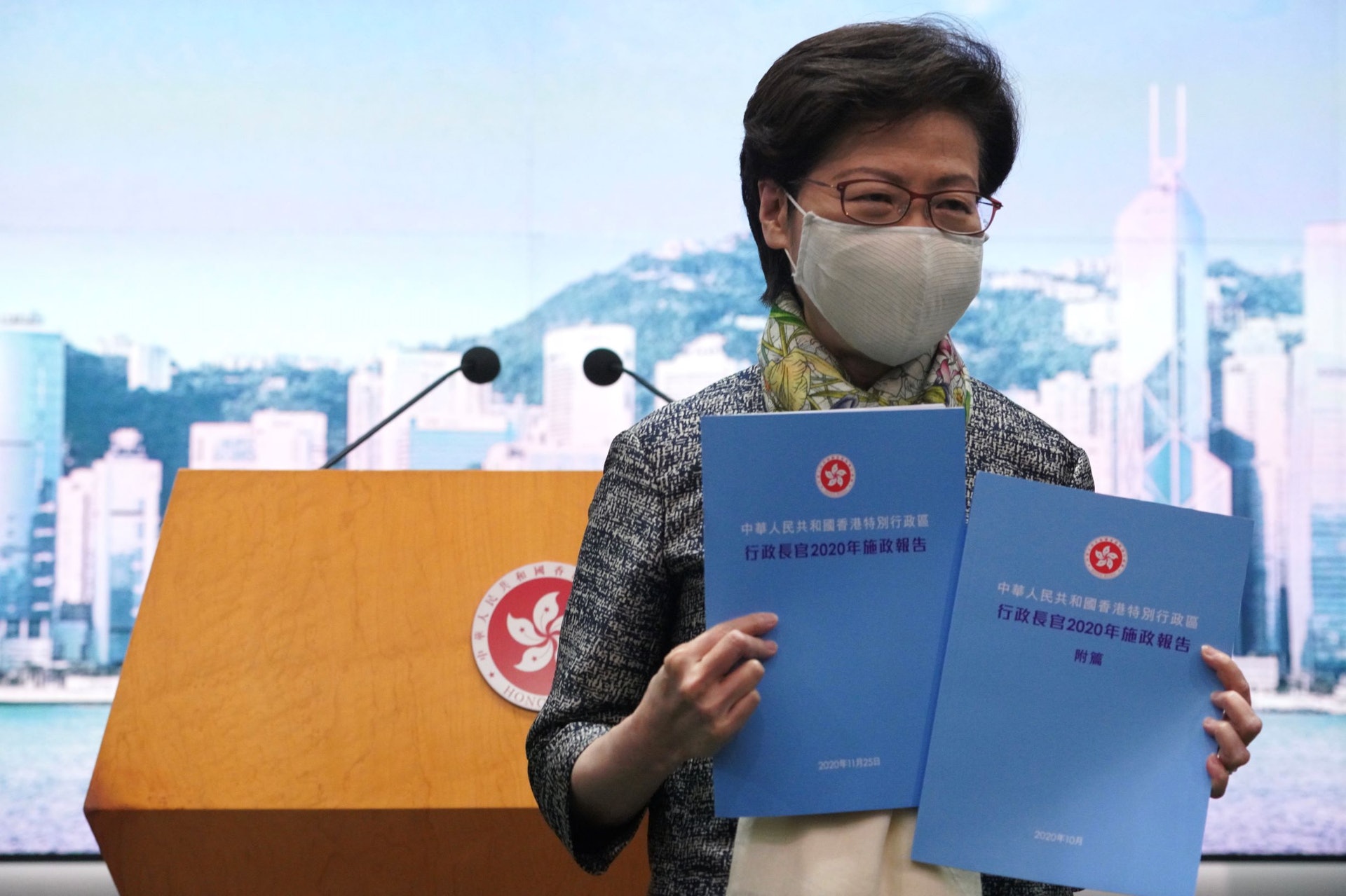 施政報告提200新措施封面沿用天藍色林鄭 為香港帶來希望 香港01 政情