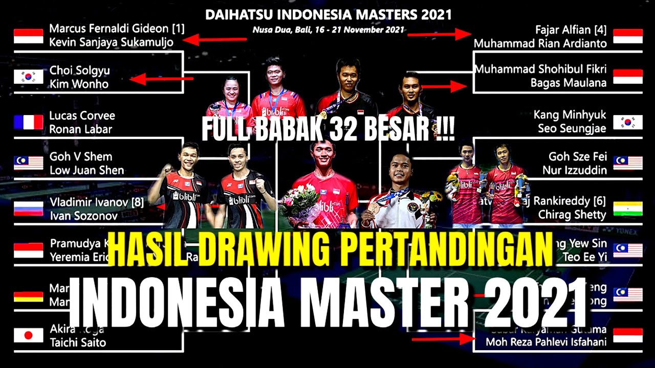 Indonesia Masters 2021 Jadwal Lengkap Indonesia Badminton Festival 2021. Babak 32 Besar Indonesia Masters 2021 bakal dimulai hari ini di Bali International Convention Centre Nusa Dua Bali. Indonesia Masters 2021 Bali 16-21 November.